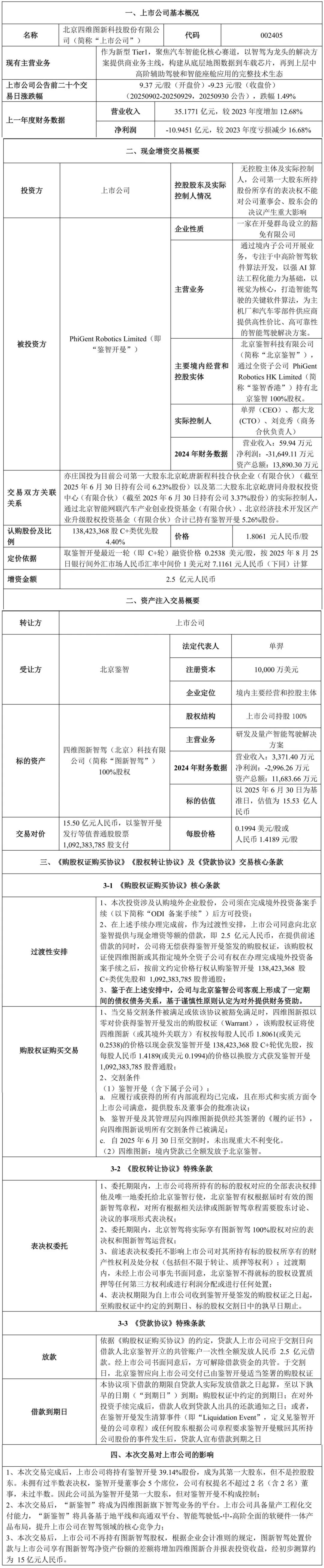 一、上市公司拟以现金及资产形式向鉴智开曼投资并提供财务资助,交易完成后,上市公司将取得PhiGent Robotics Limited(以下简称“鉴智开曼”)39.14%股权,成为第一大股东,但由于上市公司仅有权在鉴智开曼董事会5席中提名不超过2名董事,因此未拥有过半表决权,不构成控制,不成为控股股东。