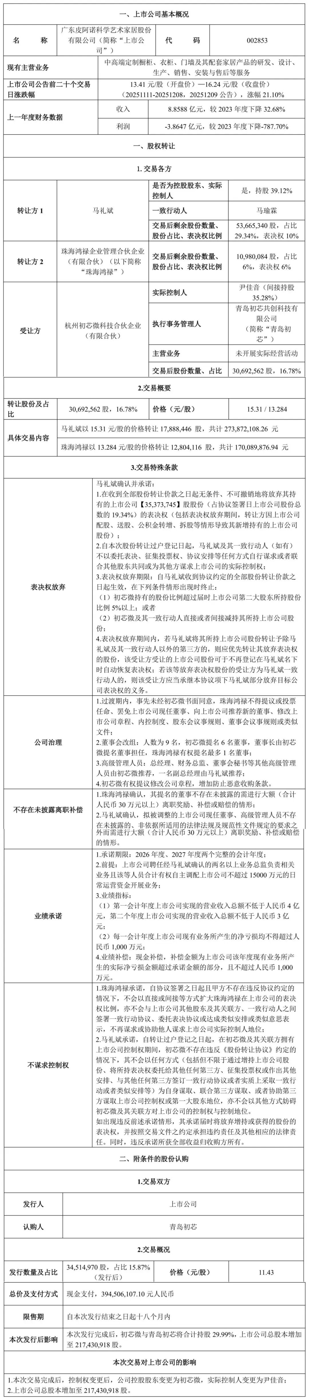 2.收购方与上市公司主营业务差异较大,杭州初芯微科技合伙企业(有限合伙)(以下简称“初芯微”)所在初芯集团位于半导体行业,上市公司处于家居行业,但国信证券发布的核查意见表示初心微及青岛初芯“无未来12个月内改变上市公司主营业务或者对上市公司主营业务作出重大调整的具体计划”。
