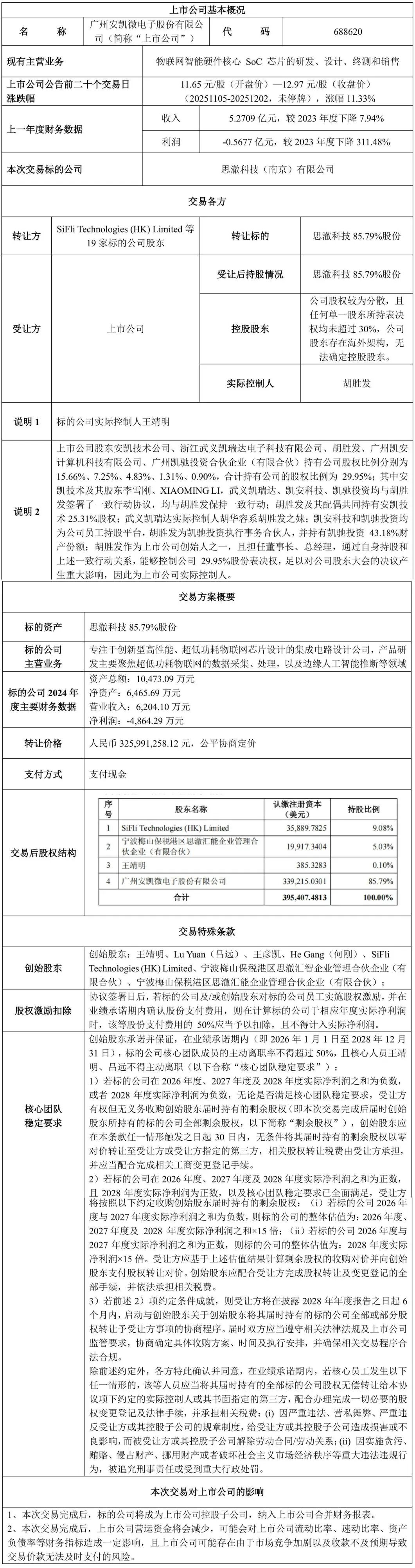 3. 思澈科技最后两轮融资(即A2轮、A2+轮)融资投前估值分别达11.2亿元及11.66亿元,本次交易整体定价3.8亿元。